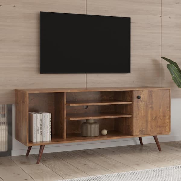 53 in. Walnut TV Stand Fits TV's up to 55 in. with 1 Storage and 2 Shelves Cabinet, High Quality Particle Board