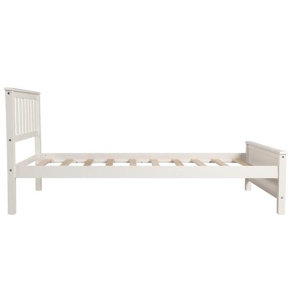 80 in. White Twin Size Wood Platform Bed with Headboard, Footboard and Wood Slat Support