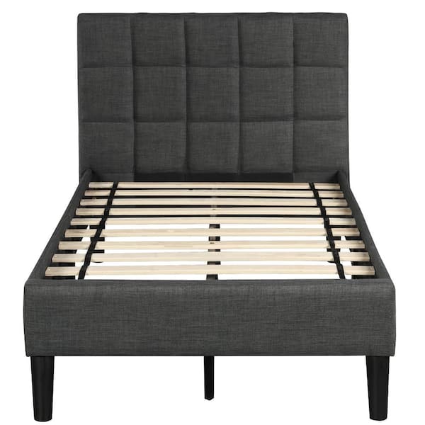 84 in. W Gray Twin Wood Frame Upholstered Diamond Stitched Platform Bed