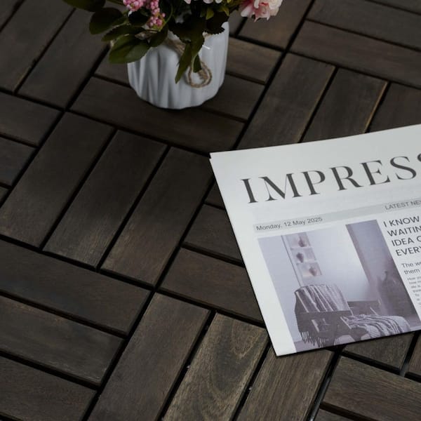 1 ft. x 1 ft. Outdoor Checker Pattern Square Wood Interlocking Flooring Deck Tiles in Dark Brown (Pack of 30 Tiles)