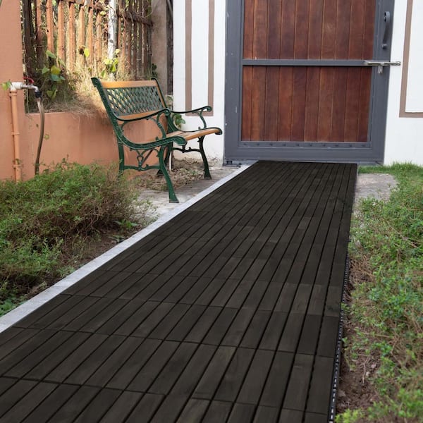 1 ft. x 1 ft. Outdoor Striped Square Wood Interlocking Flooring Deck Tiles in Dark Brown (Pack of 10 Tiles)