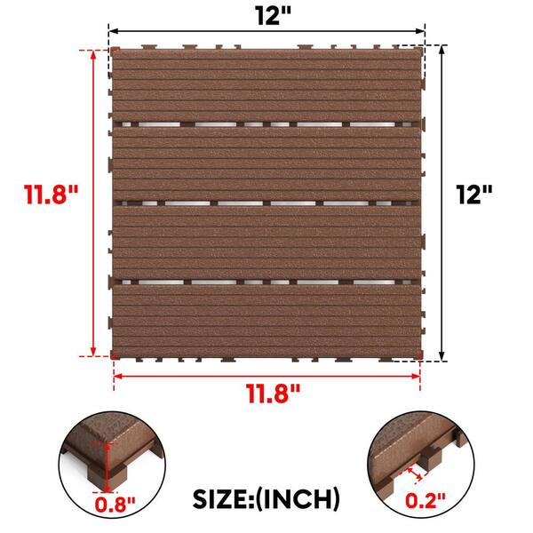 12in.Wx12in.L Outdoor Backyard Striped Pattern Square PVC Interlocking Flooring Deck Tiles(Pack of 44Tiles)Brown