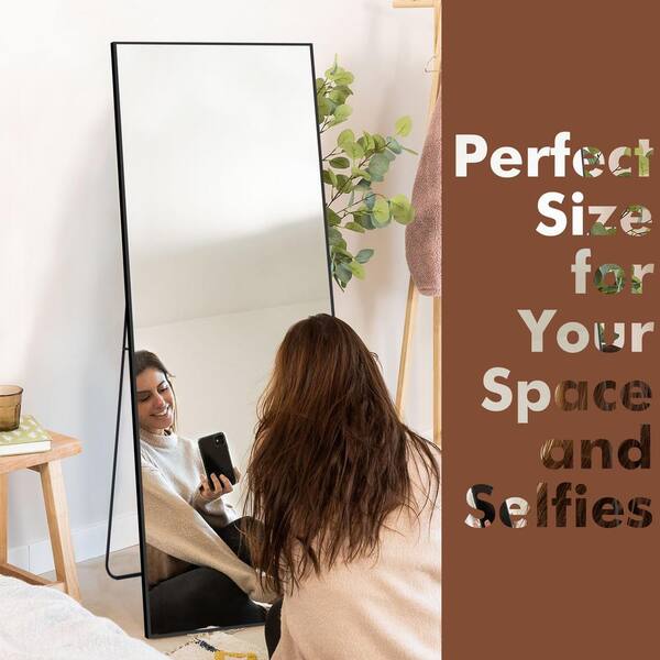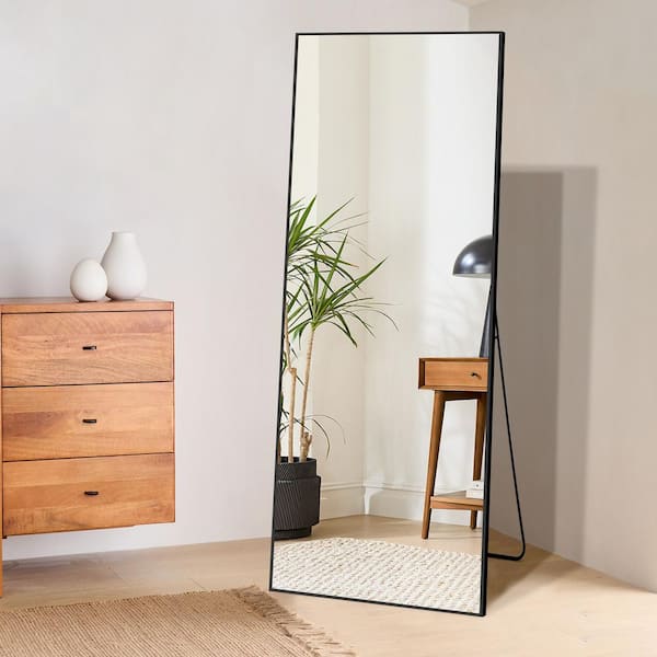 21.26 in. W x 64.17 in. H Metal Black Standing Mirror Rectangle Full Length Mirror Aluminum Framed Wall Mounted Stand