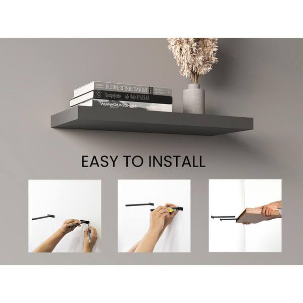 31.5 in. W x 9.8 in. D x 1.5 in. H Gray Composite Decorative Wall Shelf for Living Room (Set of 2)