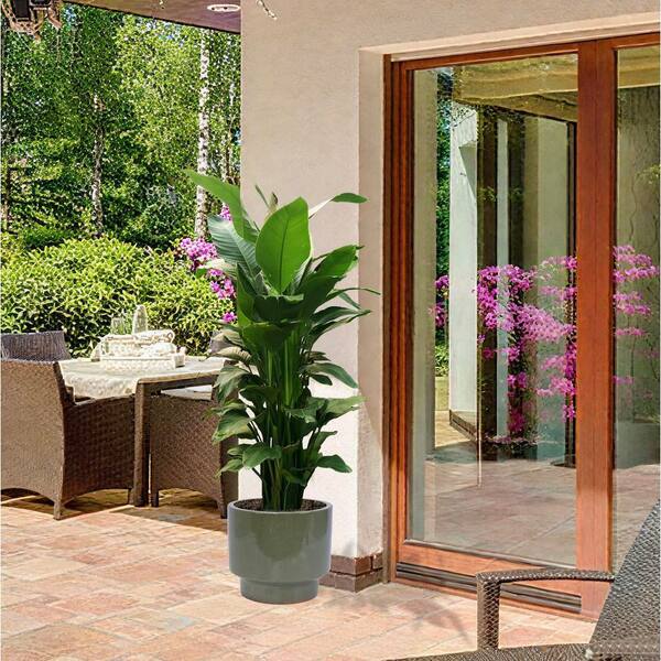 Set of 3 13 in. Antique Light Green Ceramic Flowerpot-Round Modern Planter with Drainage Hole, Frost &Weather Resistant
