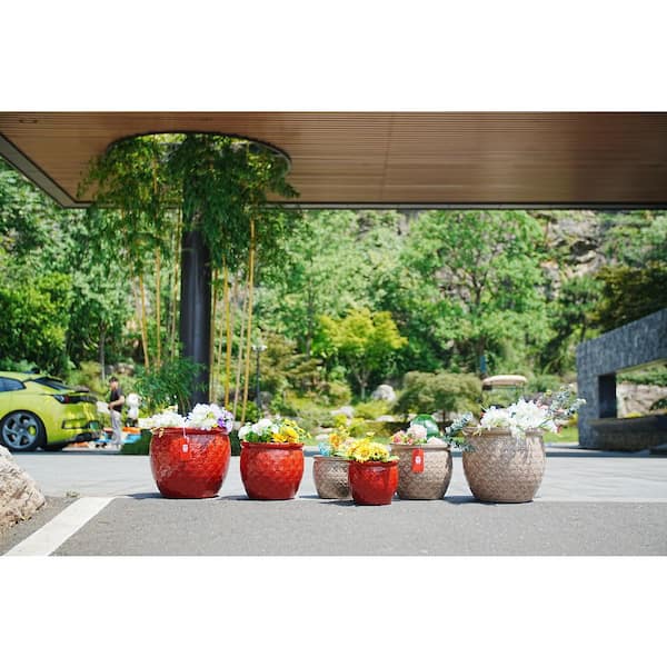 Set of 3 13 in. Round Brown Ceramic Flower Pot with Drainage-Frost Resistant Planter for Indoor Outdoor