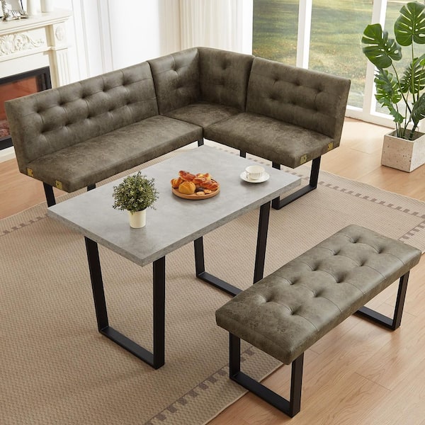 3-Piece MDF Gray Dining Table Set 47.2 in. Rectangle Table with Corner Bench (Light Brown)