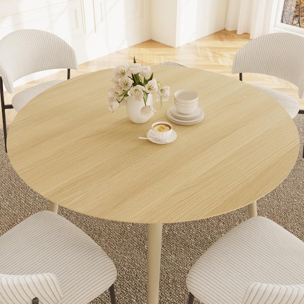 5-Piece 43.3 in. Modern Round Dining Table with 4-Corduroy Chairs (Table Plus 4-White Shell Chairs)