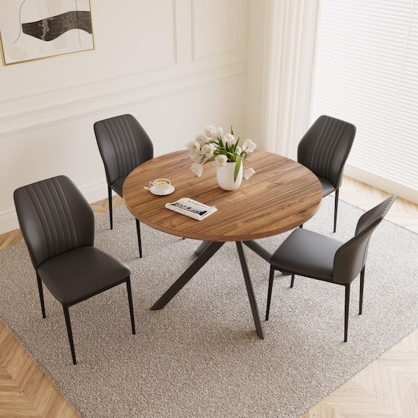 5-Piece Black Chairs and Light Walnut Round Dining Table, Dining Table Set with 4 Dining Chairs
