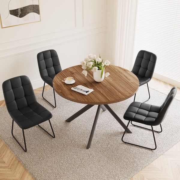 5-Piece Black Chairs and Light Walnut Round Dining Table, Dining Table Set with 4 U-Shaped Chairs