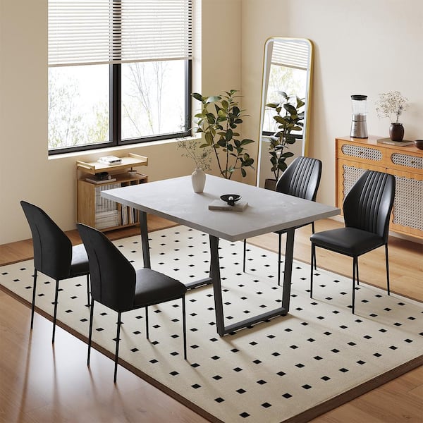 5-Piece Rectangle Gray MDF Table Top Dining Room Set Seating 4 with Black Chairs