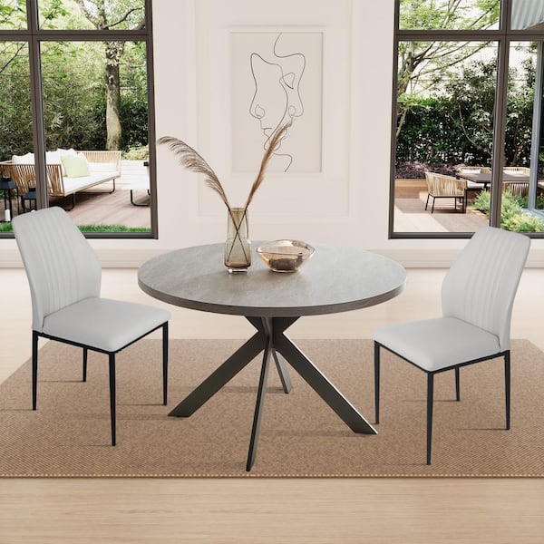 5-Piece Round Gray MDF Dining Table Top Dining Room Set Seating 4-with White Chairs