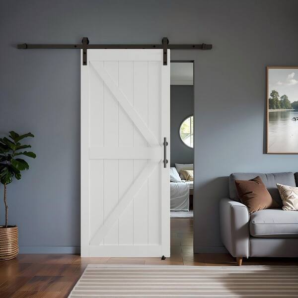 24 in. x 84 in. Paneled K-Bar White PVC Finished Solid Core MDF Sliding Barn Door with Hardware Kit