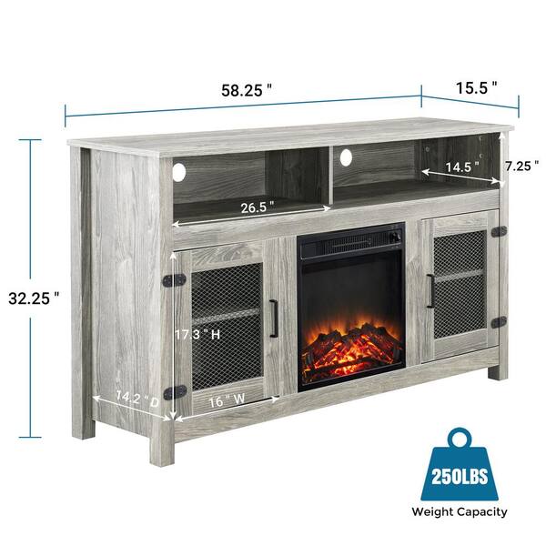 58.25 in. TV Stand Cabinet Sideboard Electric Fireplace Fits TV's Up to 65 in. with Adjustable Shelves in Light Gray