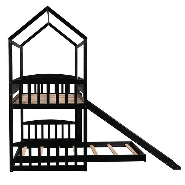 Espresso Twin Over Twin Bunk Bed with Slide, House Bed with Slide