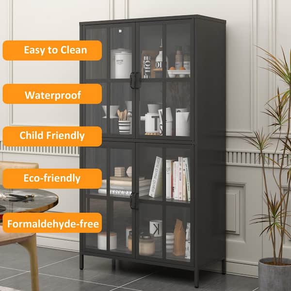 33 in. W Metal Kitchen Organizers Storage Cabinet with Glass Door in Black, Sideboard Cabinet, Buffet Cabinet