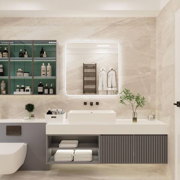 36 in. W x 36 in. H Rectangular Framed Dimmable LED Wall Bathroom Vanity Mirror in Matte White with Anti-Fog