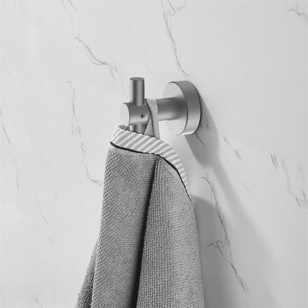 Aluminum Knob Bath Robe/Towel Hook with Round Base in Matte Gray (4-Pack)