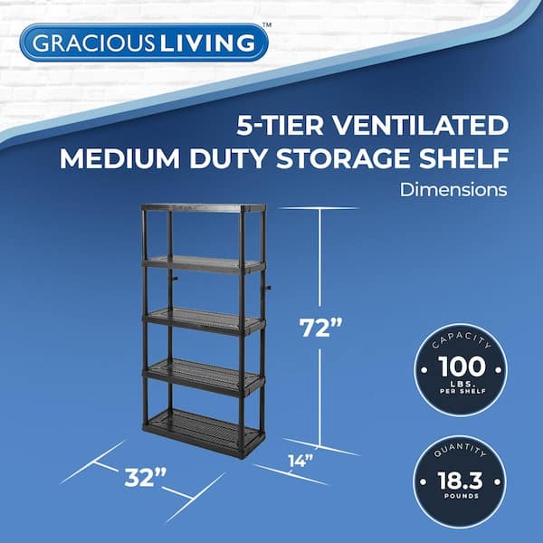 Black 5-Tier Plastic Garage Storage Shelving Unit (32 in. W x 72 in. H x 14 in. D)