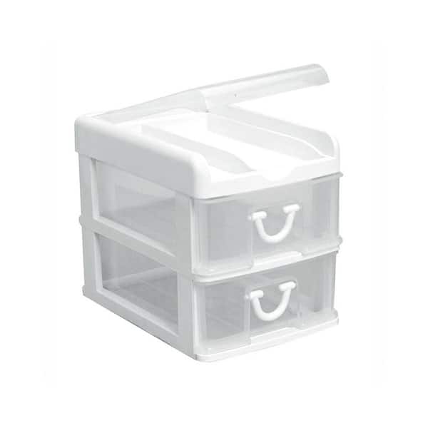 Mini 2 Drawer Desktop Organizer with Flip Top, White (3 Pack)