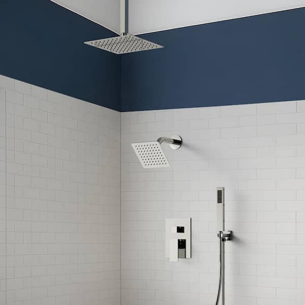 10&6 in. Dual Square Shower Heads Double Handle 3-Spray Tub and Shower Faucet 2.5 GPM in Polished Chrome Valve Included