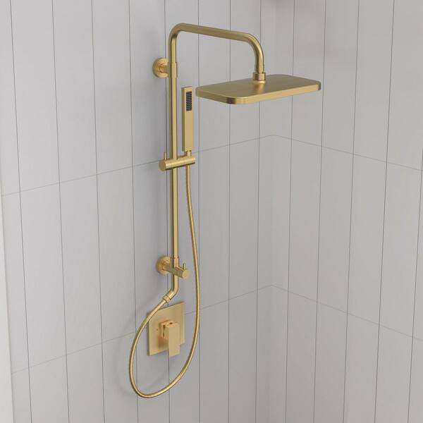 2-Spray Wall Mount Exposed Dual Fixed and Handheld Shower Head 2.5 GPM with Adjustable Height in Brushed Gold