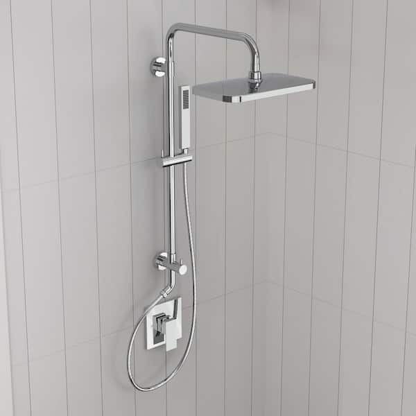 2-Spray Wall Mount Exposed Rectangle Dual Fixed and Handheld Shower Head 2.5 GPM with Adjustable Height in Chrome