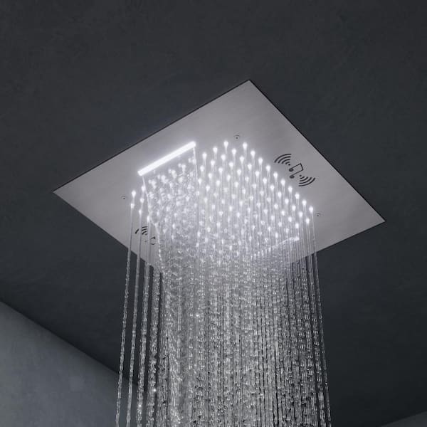 Aurora Cascade LED Showers 5-Spray Ceiling Mount 20 in. Fixed Shower 2 10 in. Showers Handheld in Brushed Nickel-5 Spray