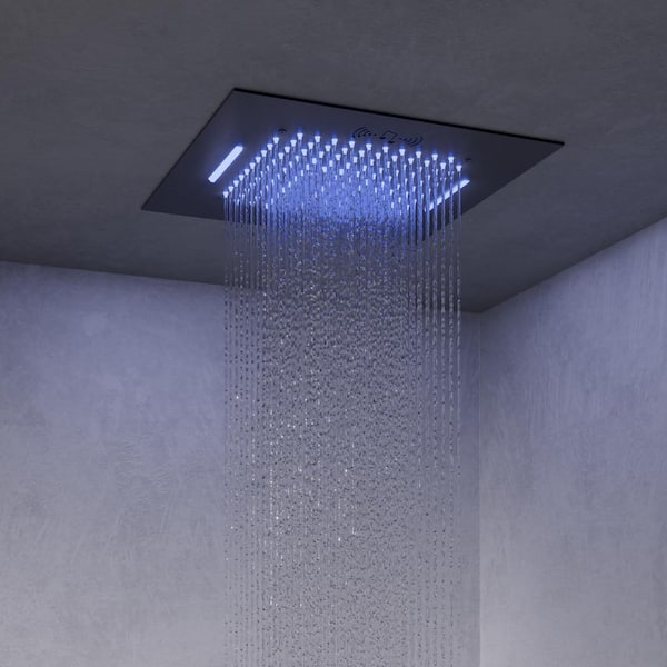 Aurora Cascade LED Showers 5-Spray Ceiling Mount 20 in. Fixed Shower 2, 10 in. Showers Handheld in Matte Black-5 Spray