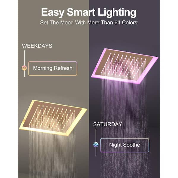 Aurora LED 12 in. 5-Spray Ceiling Mount Fixed and Handheld Dual Shower Head 2.5 GPM in Polished Rose Gold Valve Include