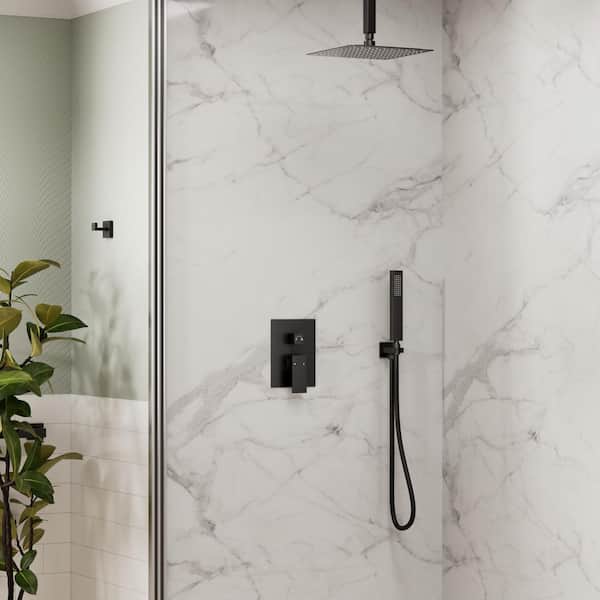 Classic Rain 10 in. Single Handle 2-Spray Shower Faucet 2.5 GPM with Pressure Balance in. Matte Black Valve Included
