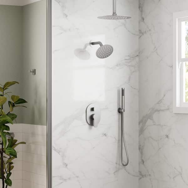 ClassicRain 10in. and 6in. 3-Spray Dual Ceiling Mount Fixed and Handheld Shower Head 2.5GPM in Brushed Nickel with Valve