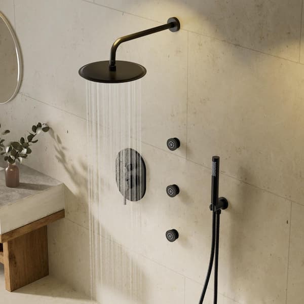 ClassicRain 12 in. Single Handle 3-Spray Tub and Shower Faucet with 3 Body Sprays 2.5 GPM in Matte Black Valve Included