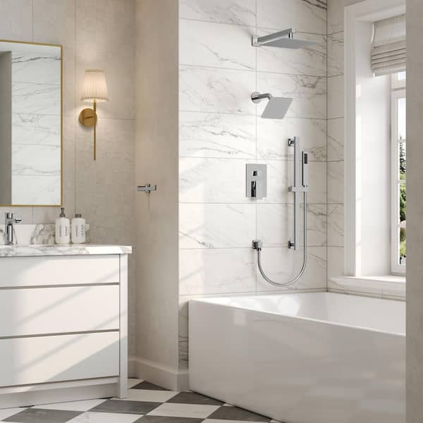 ClassicRain 3 in 1 Square with Valve 3-Spray Dual Wall Mount 10 in. Fixed and Handheld Shower Head 2.5 GPM in Chrome