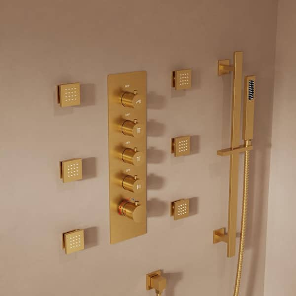 Dual 15-Spray Ceiling Mount 16 and 6 in. Fixed and Handheld Shower Head 2.5 GPM in Brushed Gold Valve Included