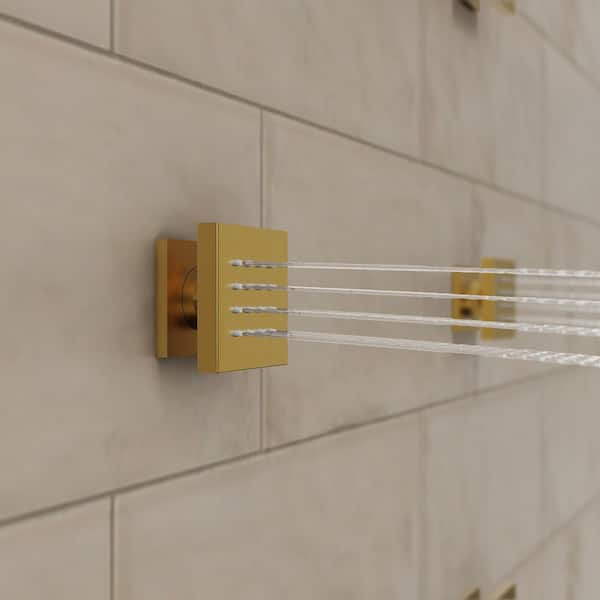 Full Spectrum LED 12 in. Triple Handle 5-Spray Ceiling Mount Shower Faucet 2.5 GPM with Body Spray in Brushed Gold