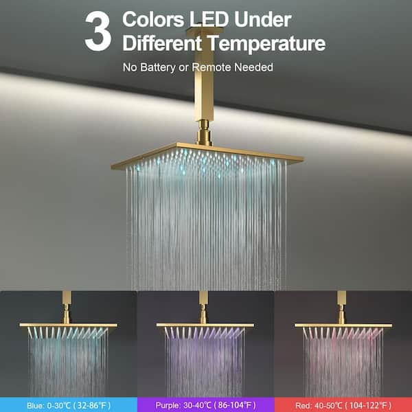 IntelliFlow 3-Color LED Quadruple Handle 7-Spray Shower Faucet 2.5 GPM with High Pressure, Anti Scald in Brushed Gold