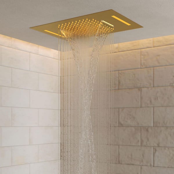 LED Thermostatic Quintuple Handle 15-Spray 23 x 15 in. Shower Faucets 2.5 GPM / Anti Scald, Body Spray in. Brushed Gold