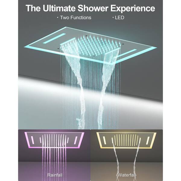 LED Thermostatic Valve 7-Spray Ceiling Mount 23*15 in. Fixed and Handheld Shower Head 2.5 GPM in Brushed Nickel