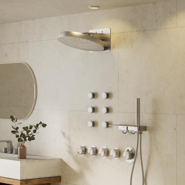 Module Switch 15-Spray 12.6 in. Dual Wall Mount Fixed and Handheld Shower Head 2.5 GPM in Brushed Nickel Include