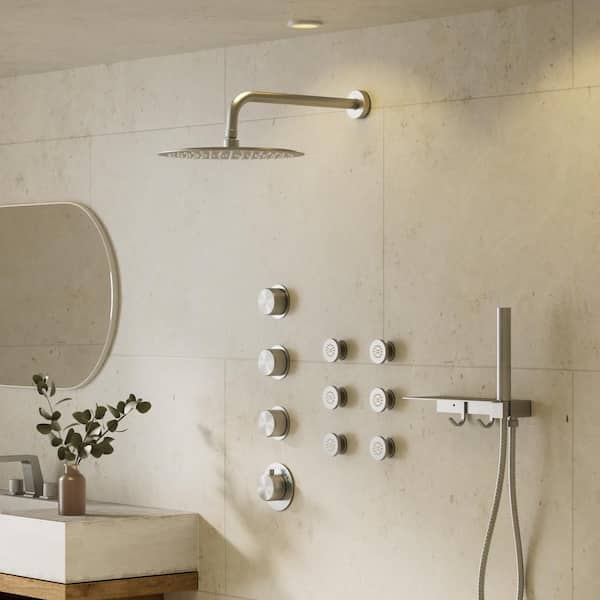Module Switch 7-Spray 12 in. Dual Wall Mount Fixed and Handheld Shower Head 2.5 GPM in Brushed Nickel with Valve 6 Jets