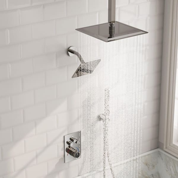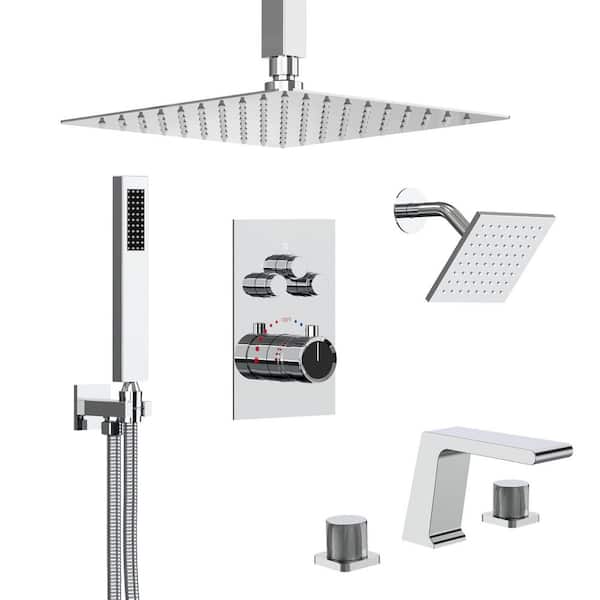 Multiple Press 12 in. Dual 7-Spray Ceiling Mount Fixed and Handheld Shower Head 2.5 GPM with Basin Faucet in Chrome