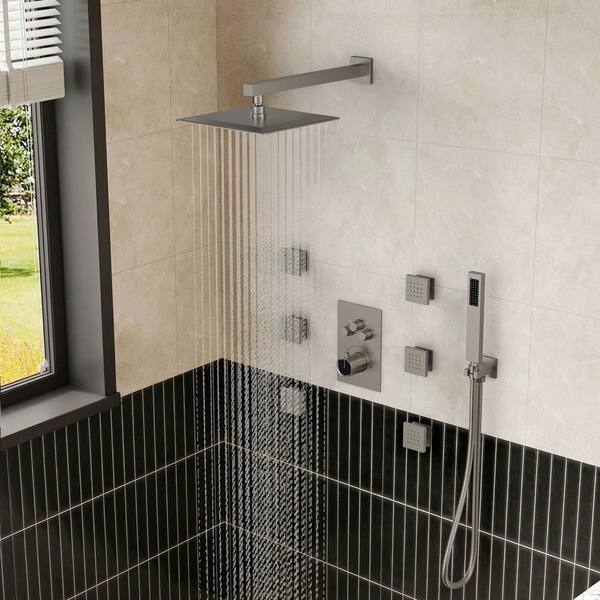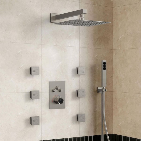 Multiple Press 7-Spray Wall Mount 12 in. Fixed and Handheld Shower Head 2.5 GPM in Brushed Nickel