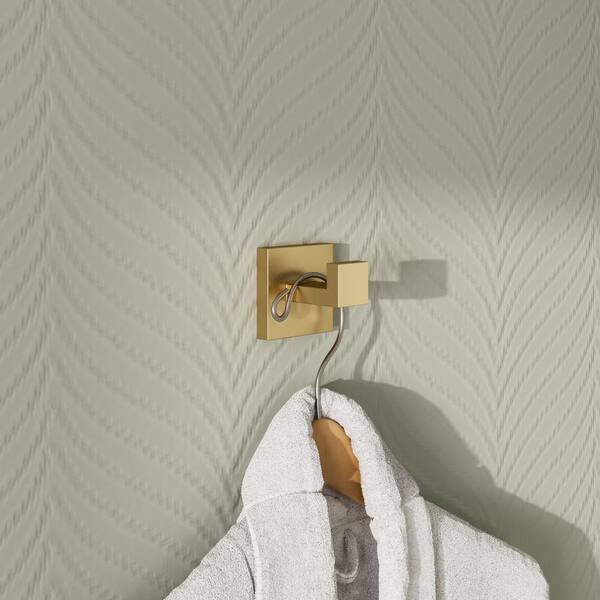 Pressure Balance 2-Spray 10in. Dual Wall Mount Fixed and Handheld Shower Head 2.5GPM with Towel Rack Set in Brushed Gold