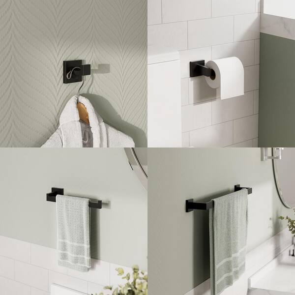 Pressure Balance 2-Spray 10in. Dual Wall Mount Fixed and Handheld Shower Head 2.5GPM with Towel Rack Set in Matte Black