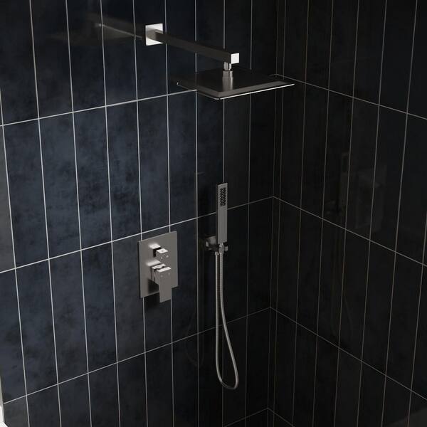 Pressure Balance 2-Spray Dual Wall Mount Fixed and Handheld Shower Head 2.5GPM with Towel Rack Set in Brushed Nickel