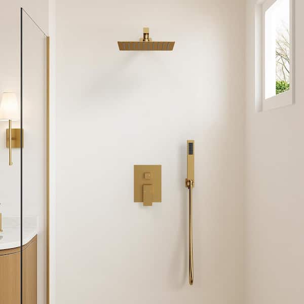 Pressure Balance Single Handle 2-Spray Wall Mount 10 in. Tub and Shower Faucet 2.5 GPM in. Brushed Gold Valve Included