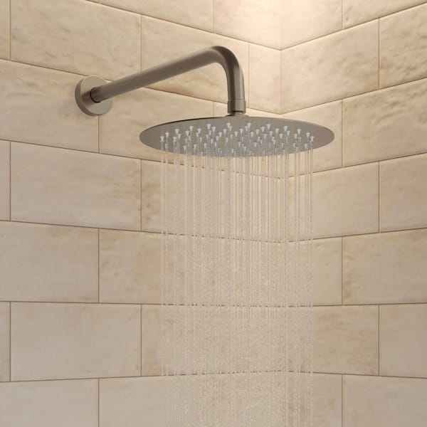 Pressure Balance Wall Mount 10 in. Round Double Handle 2-Spray Shower Faucet 2.5 GPM with Anti Scald in Brushed Nickel