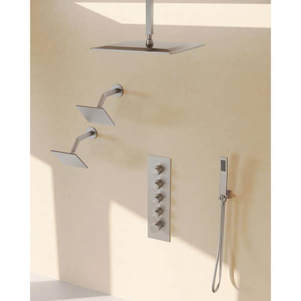 SerenityFlow 15-Spray 16 and 6 and 6 in. Dual Ceiling Mount Fixed and Handheld Shower Head 2.5 GPM in Brushed Nickel