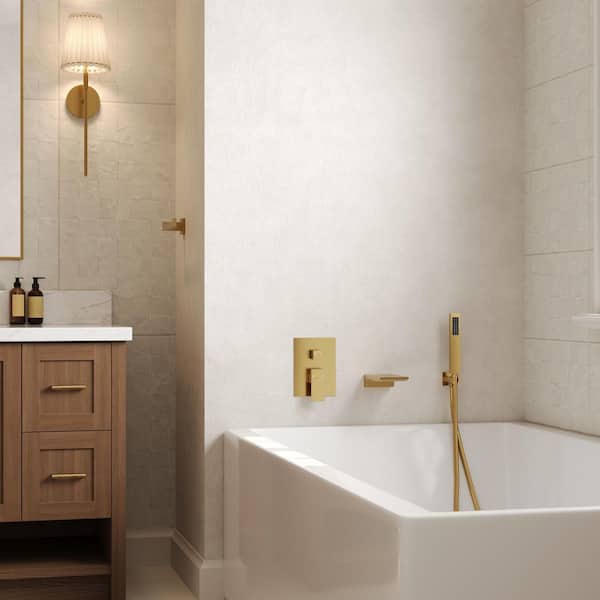 Wall Mount Single Handle 1-Spray Tub and Shower Faucet 2.5 GPM in. Brushed Gold Valve Included